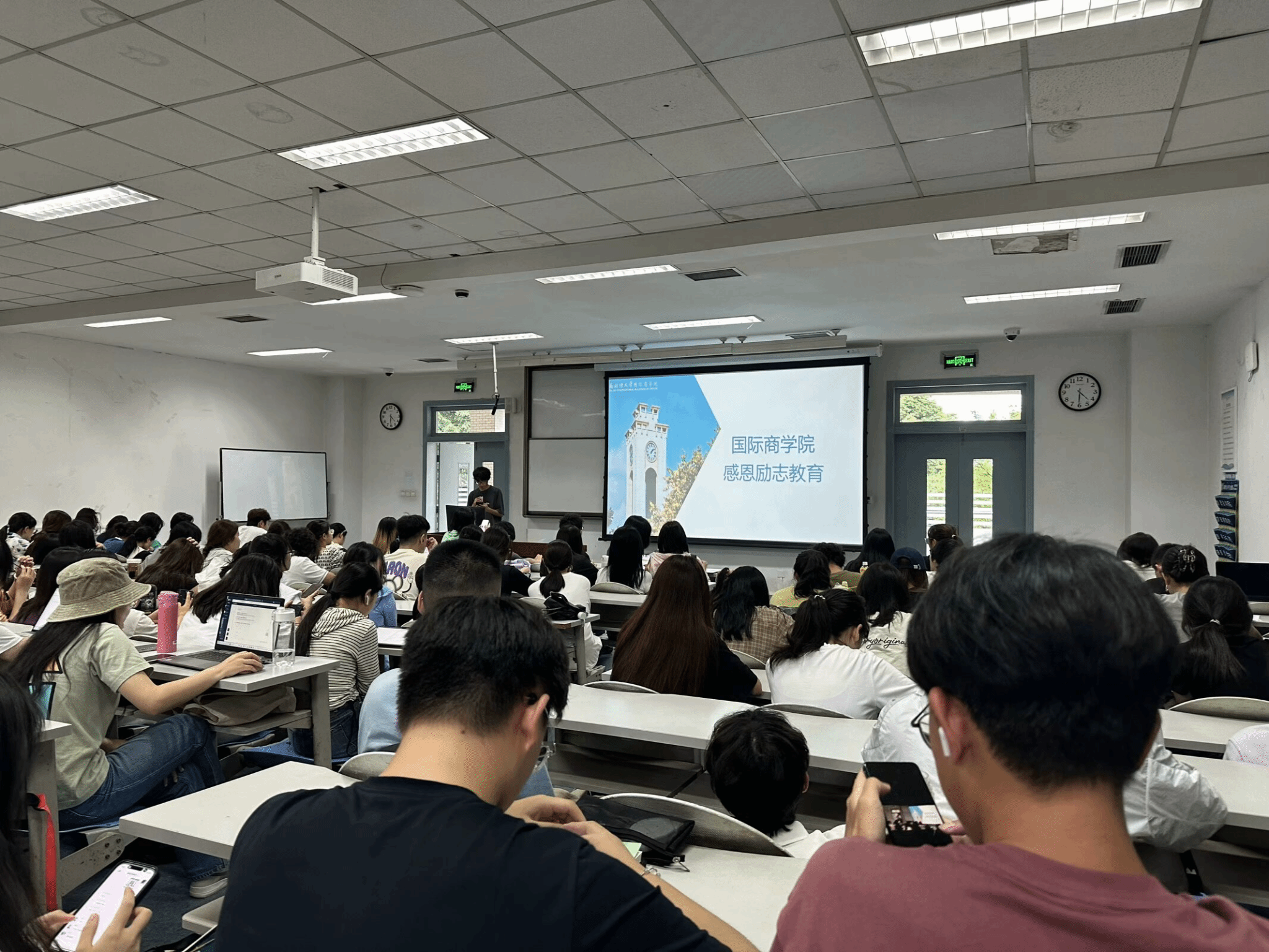 在主题班会上,各班级通过分享资助政策受益者的故事、开展小组讨论等形式,引导学生们深刻认识到资助政策的重要性和意义。学院资助宣传大使杨金玉同学还受邀到大一、大二年级大会进行“感恩·励志”主题宣讲,她为大家讲述了上大学以来在国家资助政策的帮助下她不仅可以毫无顾虑地安心学习,同时,在课余时间还积极进行社会实践,从最初的兼职打工到现在的辛勤创业,每一天虽辛苦但却充实。她的求学路、创业路激励着同学们奋发向上、努力拼搏。同学们纷纷表示,要珍惜来之不易的学习机会,以更加饱满的热情投入到学习和生活中去,用实际行动投身社会主义建设。