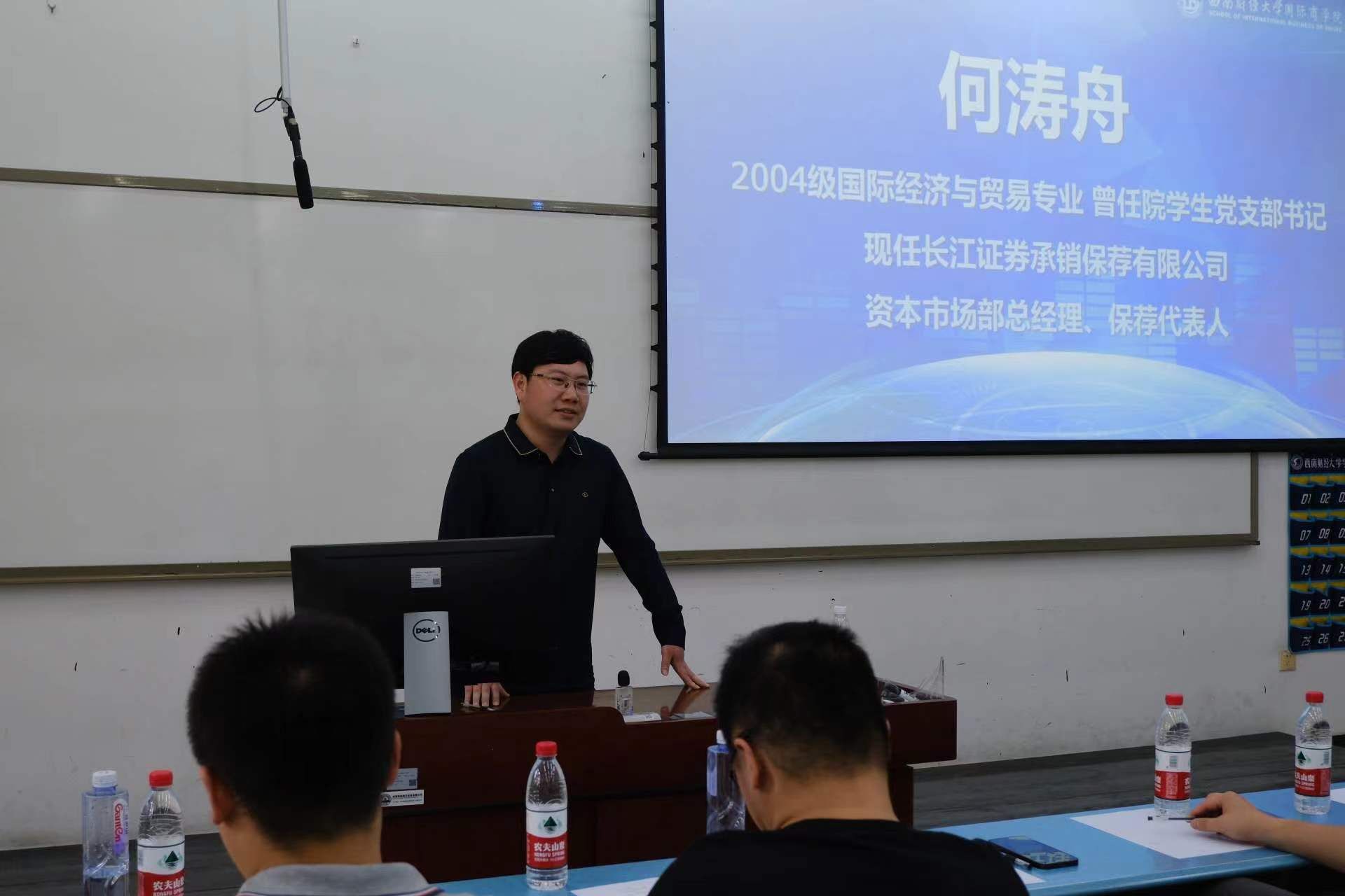 何涛舟、孙吉川、王志刚和周子彦四位校友针对金融行业、选调生和企事业单位作分享,他们从校园到职场的亲身经历,切实为同学们提供建议,帮助同学们做好职业生涯规划。何涛舟深入剖析了证券行业的就业现状,并结合个人成长轨迹,为同学们展现了一个真实而生动的行业画卷。孙吉川聚焦于金融领域的就业背景,分享了他在大学期间的成长经历与心得体会。王志刚以他丰富的选调生和公务员工作经验,着重强调了公务员所应具备的素质与能力。周子彦详细解读了国企与外企之间的差异,以及企业与个人之间的关系,为同学们提供了更为全面的职业视角。