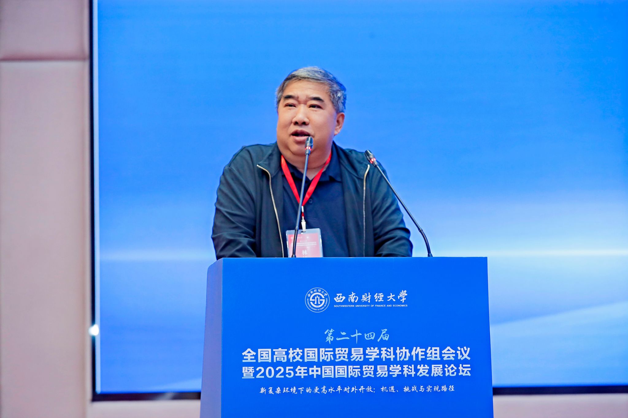 全国高校国际贸易学科协作组秘书长林桂军代表协作组致辞。他表示,协作组在跨校资源整合、前沿理论攻关上取得阶段性成果,未来将持续深化校际协作机制,强化学科前沿研究,助力国际贸易自主知识体系的构建,为服务国家高水平对外开放战略提供理论支撑与人才保障。