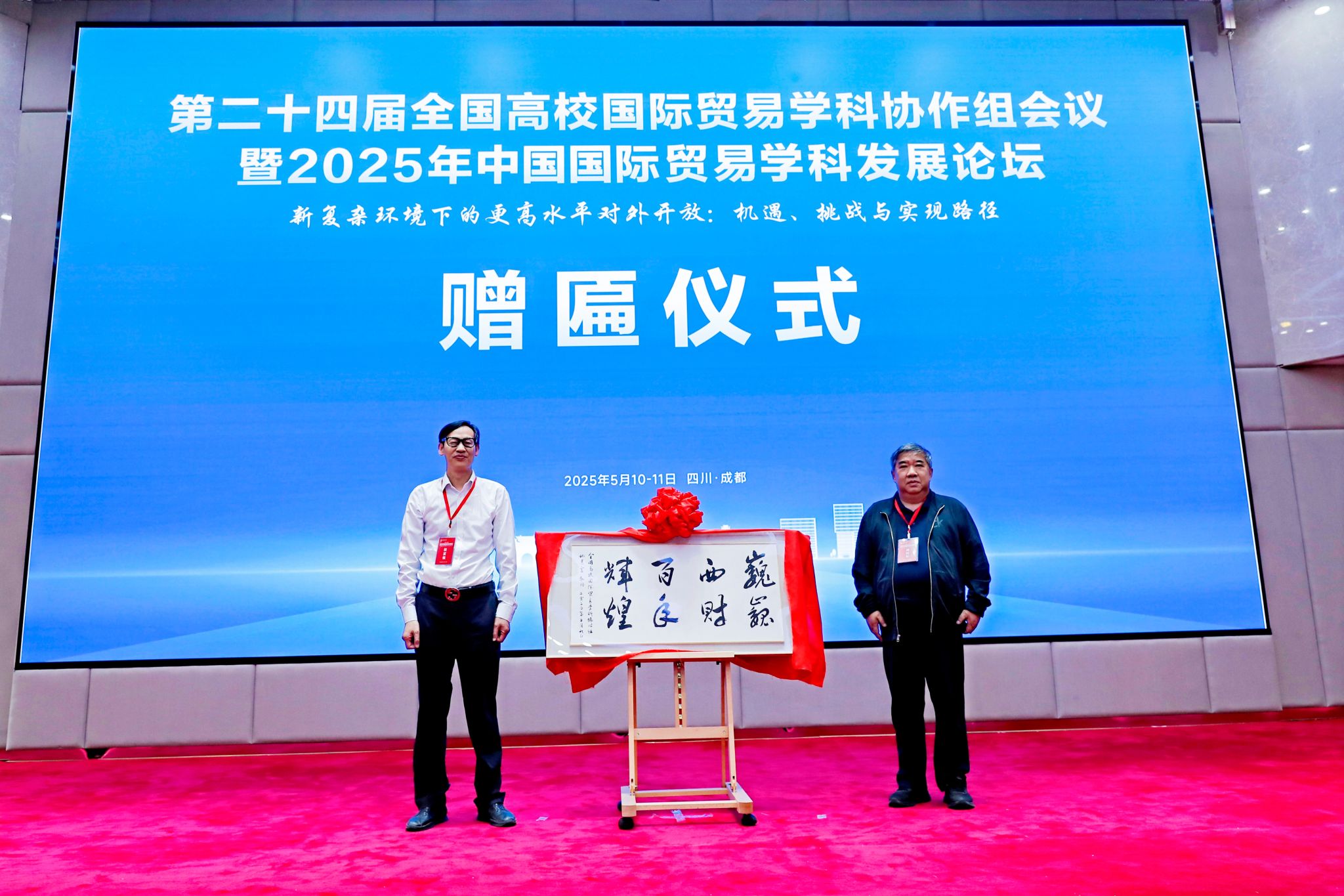 开幕式上,协作组向学校赠送百年校庆纪念牌匾,以此致贺学校百年办学历程,并体现学界对学校国际贸易学科建设与学术贡献的持续关注与支持。