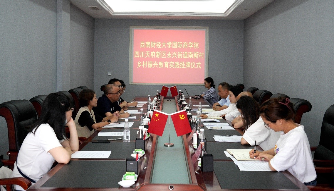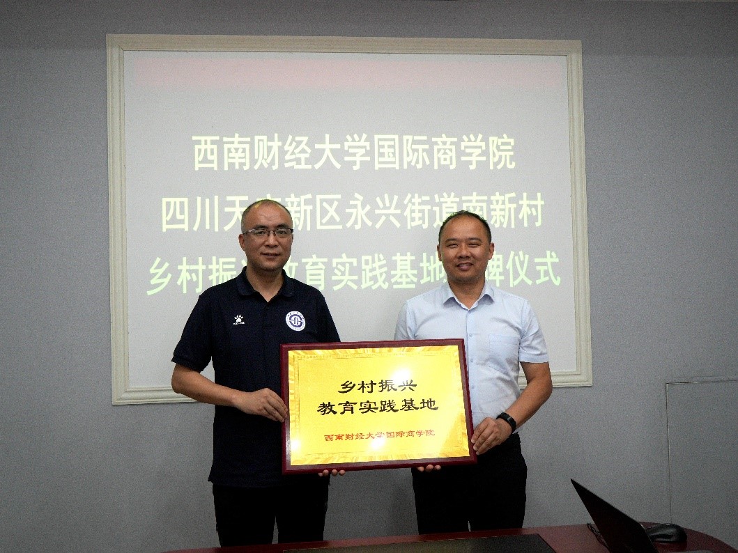 6月6日,必赢76net线路唯一官方网站乡村振兴教育实践基地揭牌仪式在天府新区永兴街道南新村举行。天府新区永兴街道党工委书记杨再涛,党工委委员陈安涛,民生服务办公室主任余虹,南新村第一书记李军;学院党委副书记俞佩玉,国际商务所所长周静教授,团委负责人及师生代表参加授牌仪式。