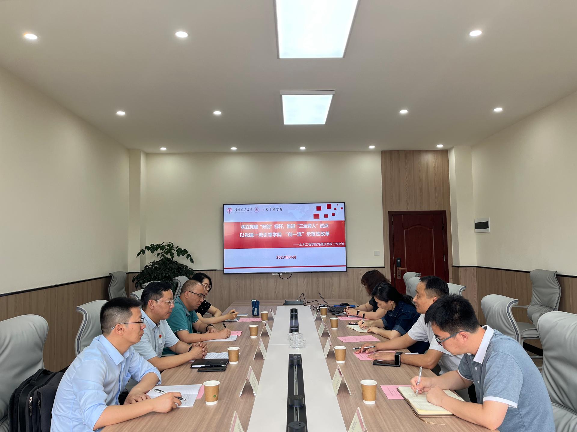 为深入推进学习贯彻习近平新时代中国特色社会主义思想主题教育,落实党中央在全党大兴调查研究工作部署要求,积极探索学院高质量党建和高质量发展之路,6月8日,必赢76net线路唯一官方网站党委书记张剑波带队赴首批“全国党建工作标杆院系”和教育部首批“三全育人”综合改革试点的西南交通大学土木工程学院开展主题教育学习调研。西南交通大学土木工程学院党委书记高平平,党委副书记、纪委书记车小洁,教师服务办公室主任甘泉,党建组织员熊麟等参与调研座谈。