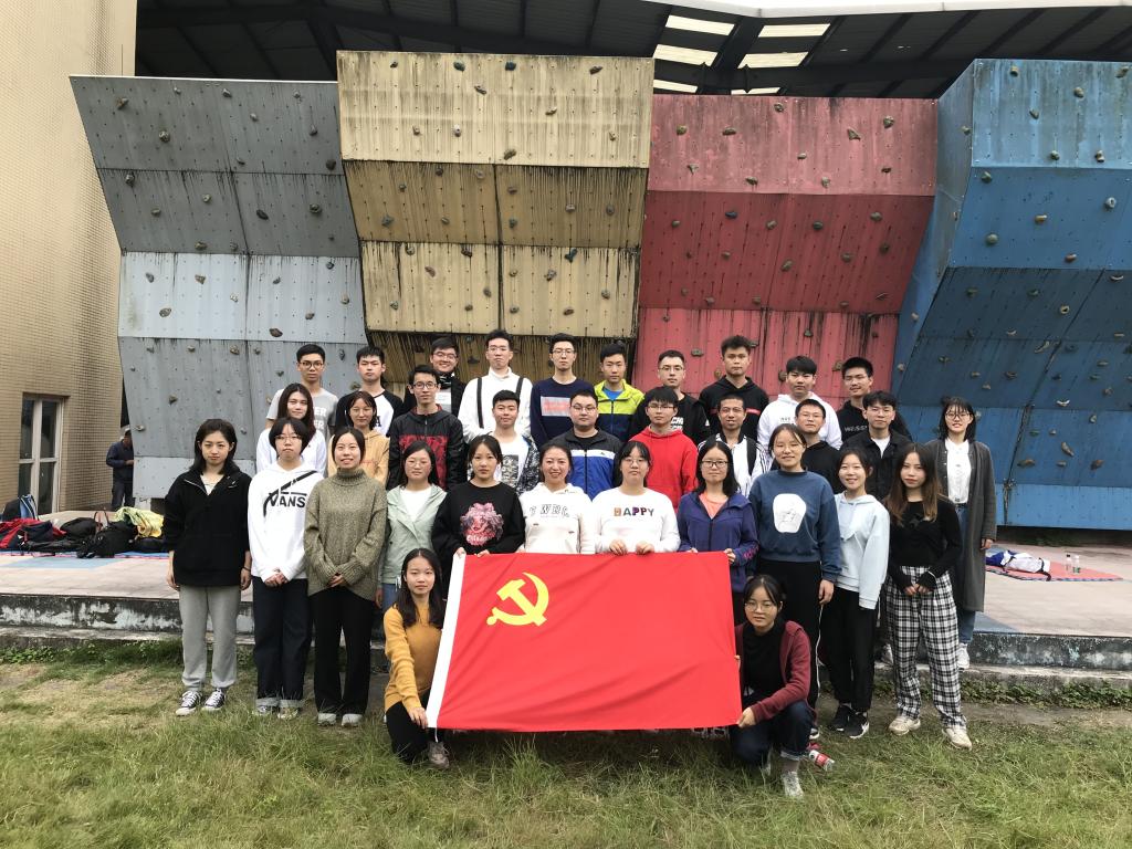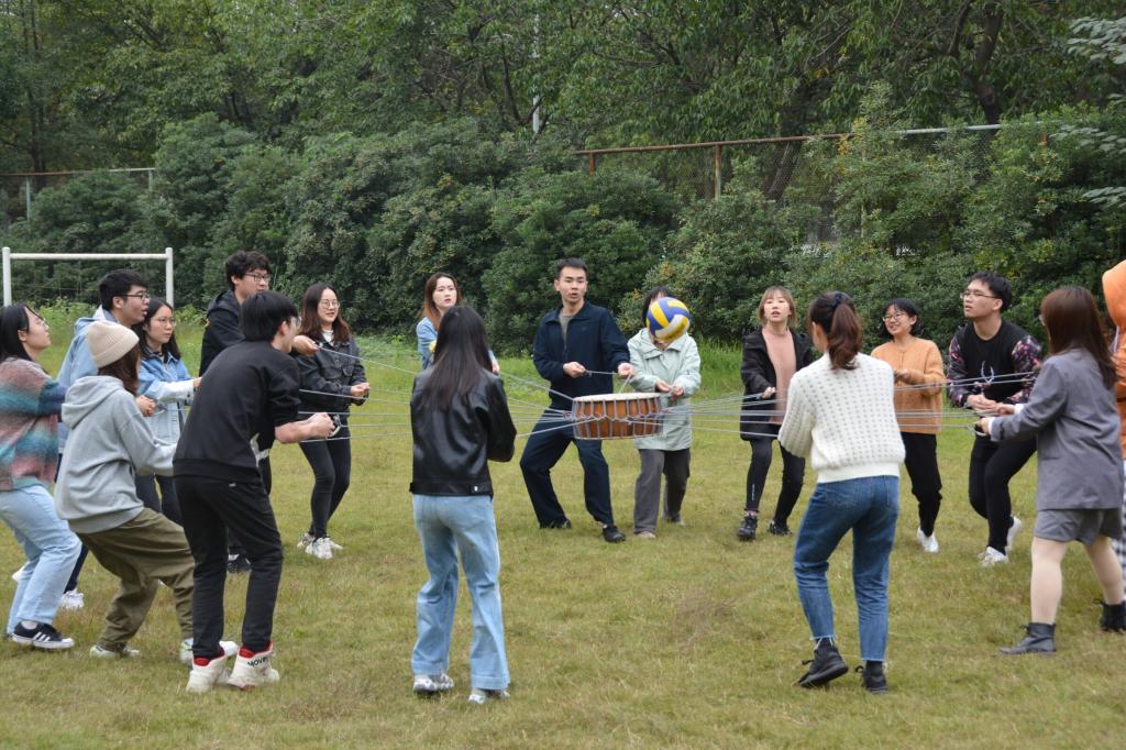 在本科生党支部书记姜鉴涛老师的带领下,全体成员齐聚柳林校区素质拓展活动中心。素质拓展中心的蔡兴林老师和王国亮老师组织同学们分成不同阵营,并启发同学们在设计团队名称、队旗队歌和团队口号的过程中拉近距离,增强合作,打造团队文化。随后,“齐眉杆”、“同心鼓”、“极限150”等各类项目轮番开展,活动比拼紧张激烈,每位成员积极投入,热情饱满,“跳大绳”、“诺亚方舟”、“乒乓球接力”等趣味项目更是将活动推向高潮,同学们斗志昂扬,迸发出高度的集体荣誉感和振奋人心的凝聚力。