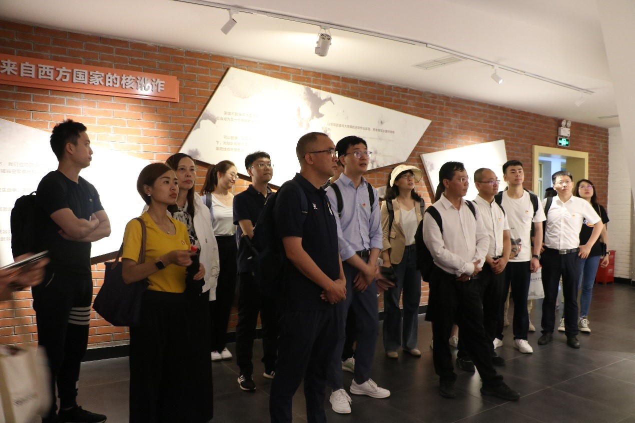 在现场教学环节,全体学员参观了邓稼先旧居、两弹研发历程馆、三防教育馆等展馆,追寻于敏、王淦昌、邓稼先、朱光亚、陈能宽等杰出科学家为国家科技事业的发展筚路蓝缕、无私奉献的光辉历程,感悟他们热爱祖国的精神信念和严谨求实的鲜明品格。在邓稼先故居的铜像前,全体学员深切缅怀邓稼先先生,党委书记张剑波带领大家重温入党誓词,学员代表敬献花篮,体悟艰苦奋斗的“两弹”精神。