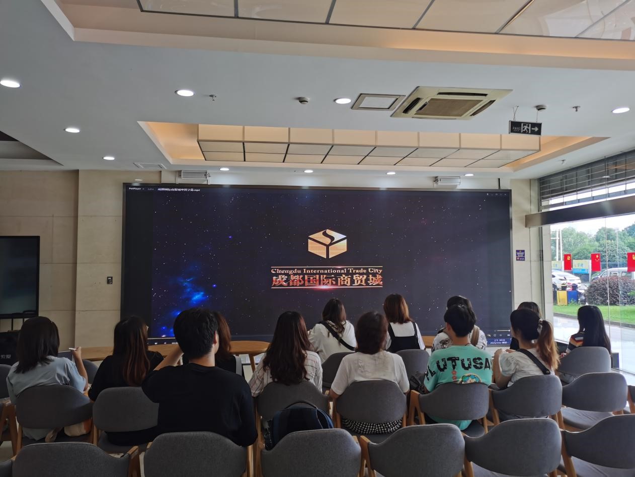 7月16日学院老师再次带队前往国际商贸城。同学们参观成都国际商贸城1号楼,听取了政府相关人员对国际商贸城市场采购贸易方式的介绍,并阐述了商贸城的发展前景。随后同学们进行自由采访和市场调研,获取需要的信息。