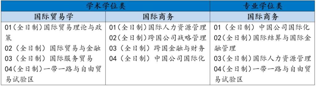 学院现设有2个系、2个所、1个实践教育指导中心、12个科研中心。学院拥有完整的学科设置和人才培养体系,国际经济与贸易、国际商务两个专业均具有完整的“本-硕-博”三级人才培养平台。目前,学院拥有国际经济与贸易(双语实验班)、国际商务(双语实验班、中外合作办学)本科专业;国际贸易学、国际商务科学硕士和博士专业及国际商务专业硕士专业。