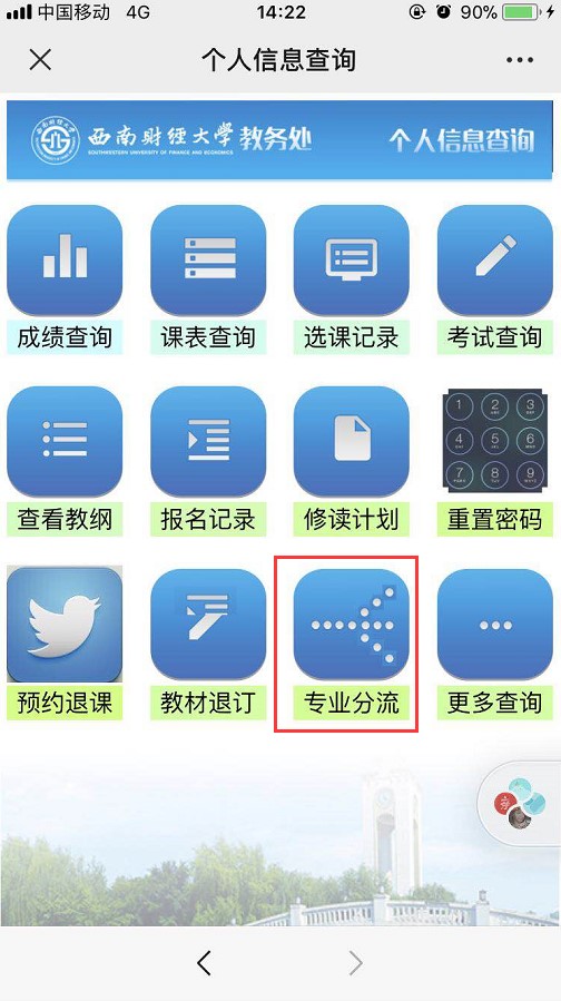 登录“必赢76net线路唯一官方网站教务处”微信公众号,点击“信息查询”->“个人信息”->“专业分流”->选择预报名专业->“确认报名”。